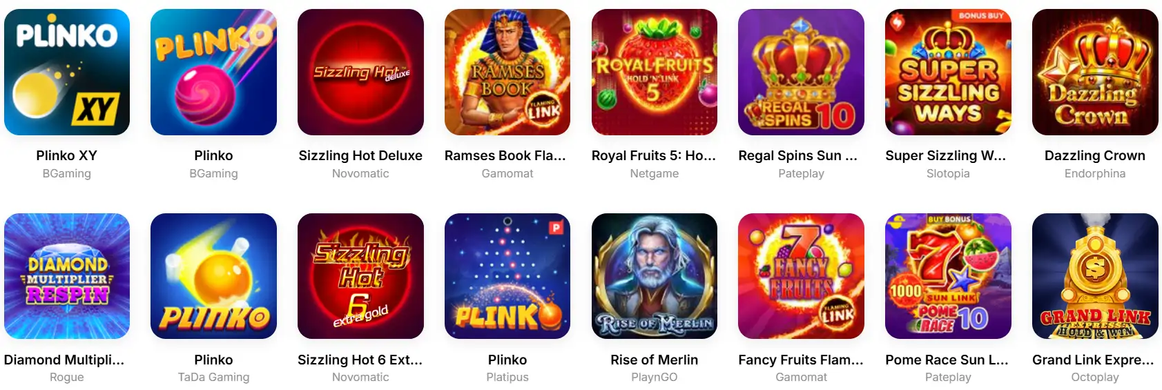 Neben Plinko findest du weitere populäre Instant-Spiele wie Aviator, JetX und verschiedene Crash Games, die mit einfacher Mechanik und kurzen Spielrunden für schnelle Unterhaltung sorgen.