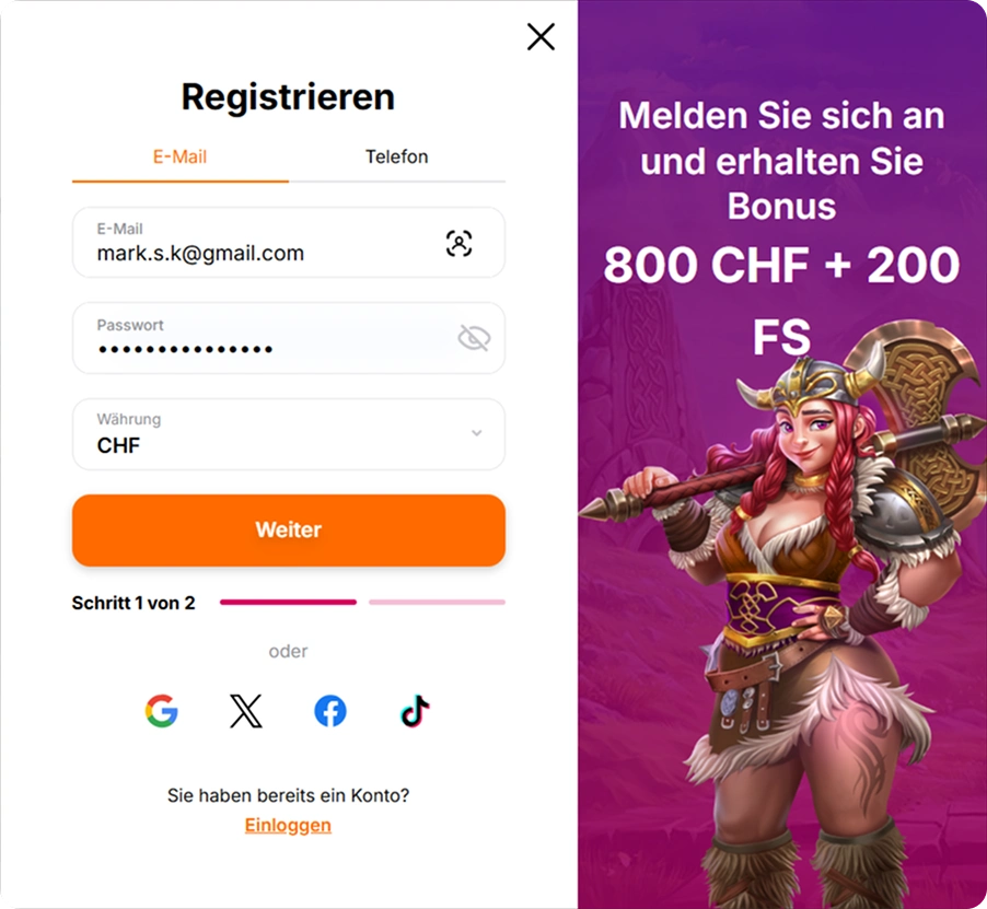 Nach erfolgreicher Registrierung kannst du sofort einzahlen und spielen. Wichtig zu wissen: Vor der ersten Auszahlung, spätestens jedoch bei Beträgen über 1.000 CHF, wird eine Verifizierung deiner Identität erforderlich. Hierfür benötigst du: