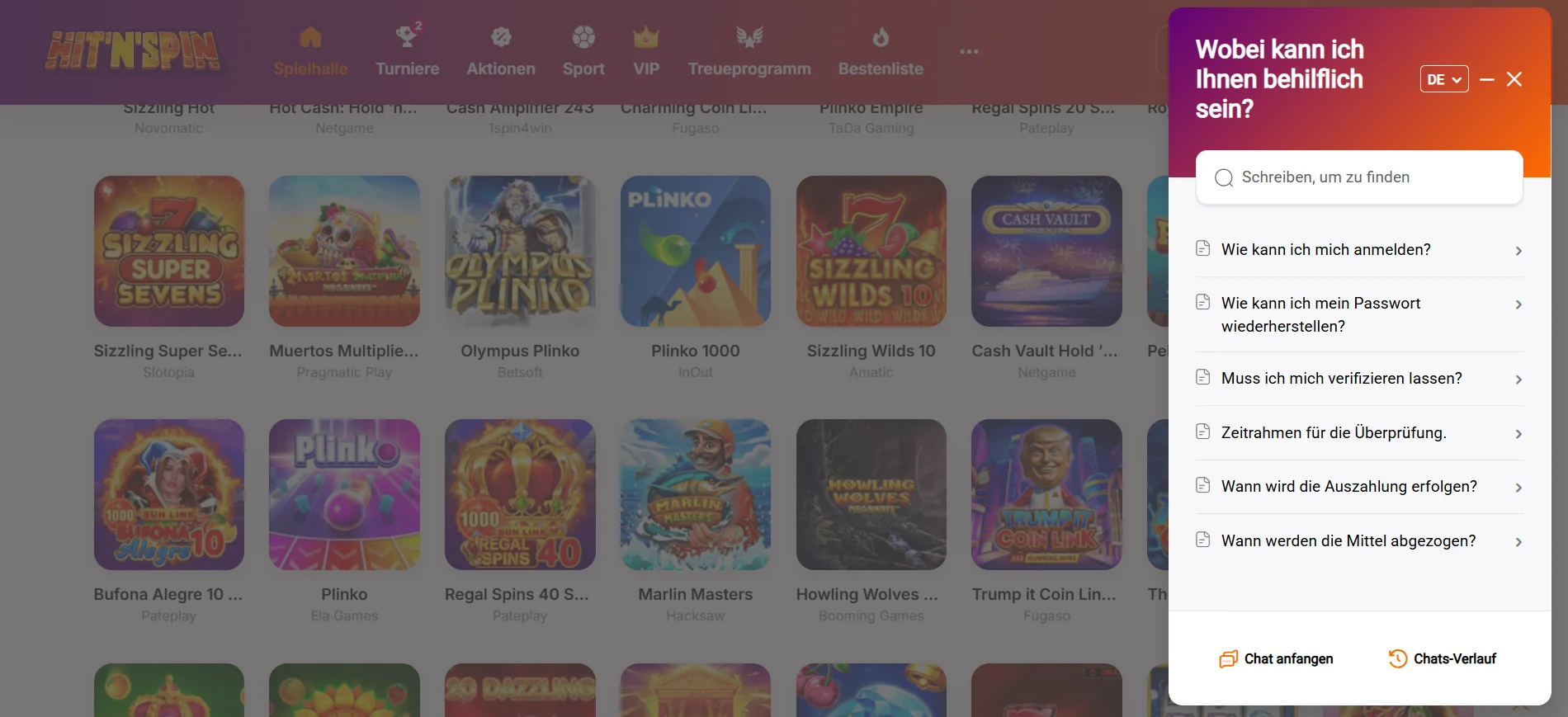 HitnSpin überzeugt als modernes Online-Casino mit breitem Spielangebot und attraktiven Bonusbedingungen. Besonders hervorzuheben ist die aussergewöhnlich grosse Auswahl an Plinko-Varianten – elf verschiedene Versionen stellen die meisten Konkurrenten in den Schatten.