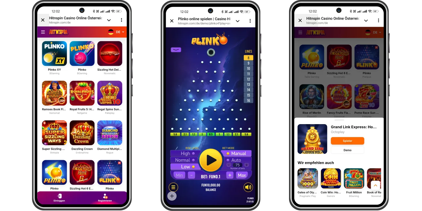 Besonders bemerkenswert ist die umfangreiche Sammlung an Plinko-Varianten, die HitnSpin zu einem Paradies für Fans dieses trendigen Spiels macht. Während viele Online-Casinos nur eine oder zwei Versionen anbieten, kannst du bei HitnSpin zwischen elf verschiedenen Plinko-Spielen wählen. Jede Version bringt einzigartige Eigenschaften mit: