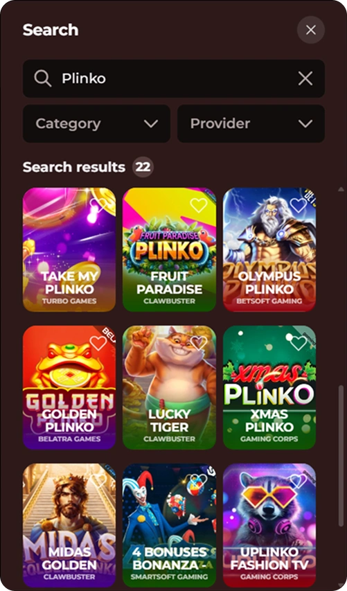 | Anzahl Spiele | 6’000+ (inkl. mehrere Plinko-Varianten) |
